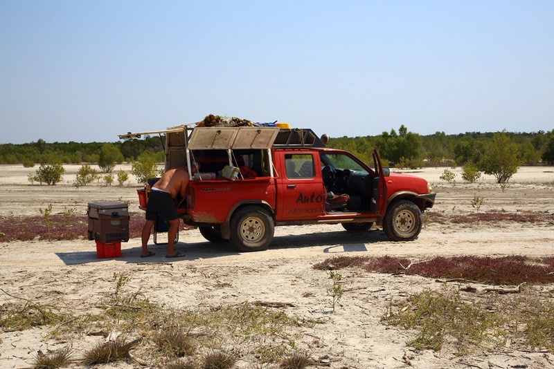 In dieser einsamen Gegend gibt es nur wenige Dörfer, eines davon ist Antsalova. Diese Ansiedlung ist nur von Juli bis Oktober zu erreichen. Wir glauben es sofort, schon alleine wegen der extrem ausgewaschenen Piste, die über einige Hügelketten hierhin führt, auch wenn die Lage des Ortes einen grandiosen Blick übers Land bietet, in dem die tiefrote Erde ein guter Kontrast zum satten Grün der Bäume darstellt. Die Strecke ist so schlecht, dass wir sehr langsam vorankommen und am Abend ein Buschcamp einlegen müssen.